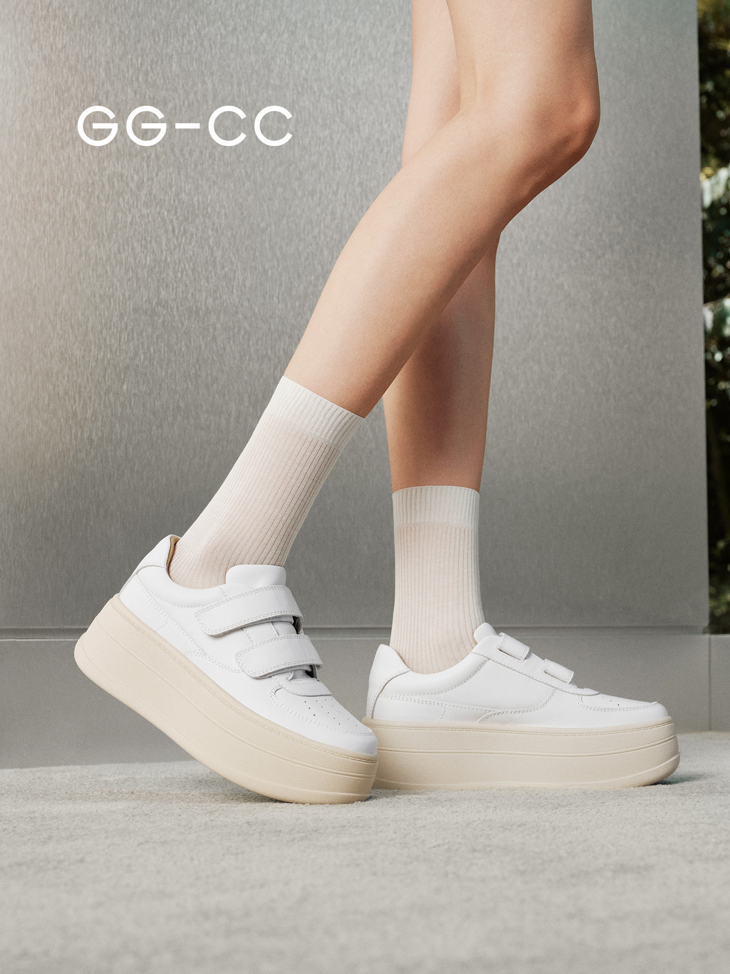 【Mammoth Bread】Ggcc Thick-Soled White Sneakers for Women 2025 Autumn New Velcro Height-Increasing Casual Board Shoes