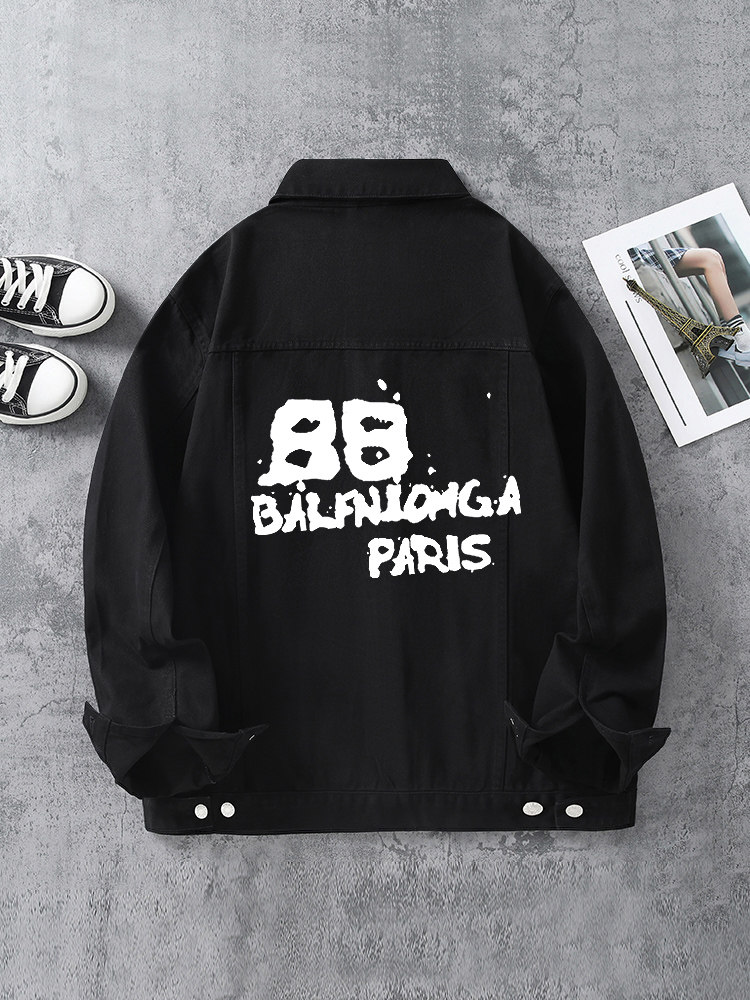 Paris Trendy Brand Denim Jacket Autumn and Winter Unisex Loose Double-B Graffiti Letter Print Jacket Couple Tops