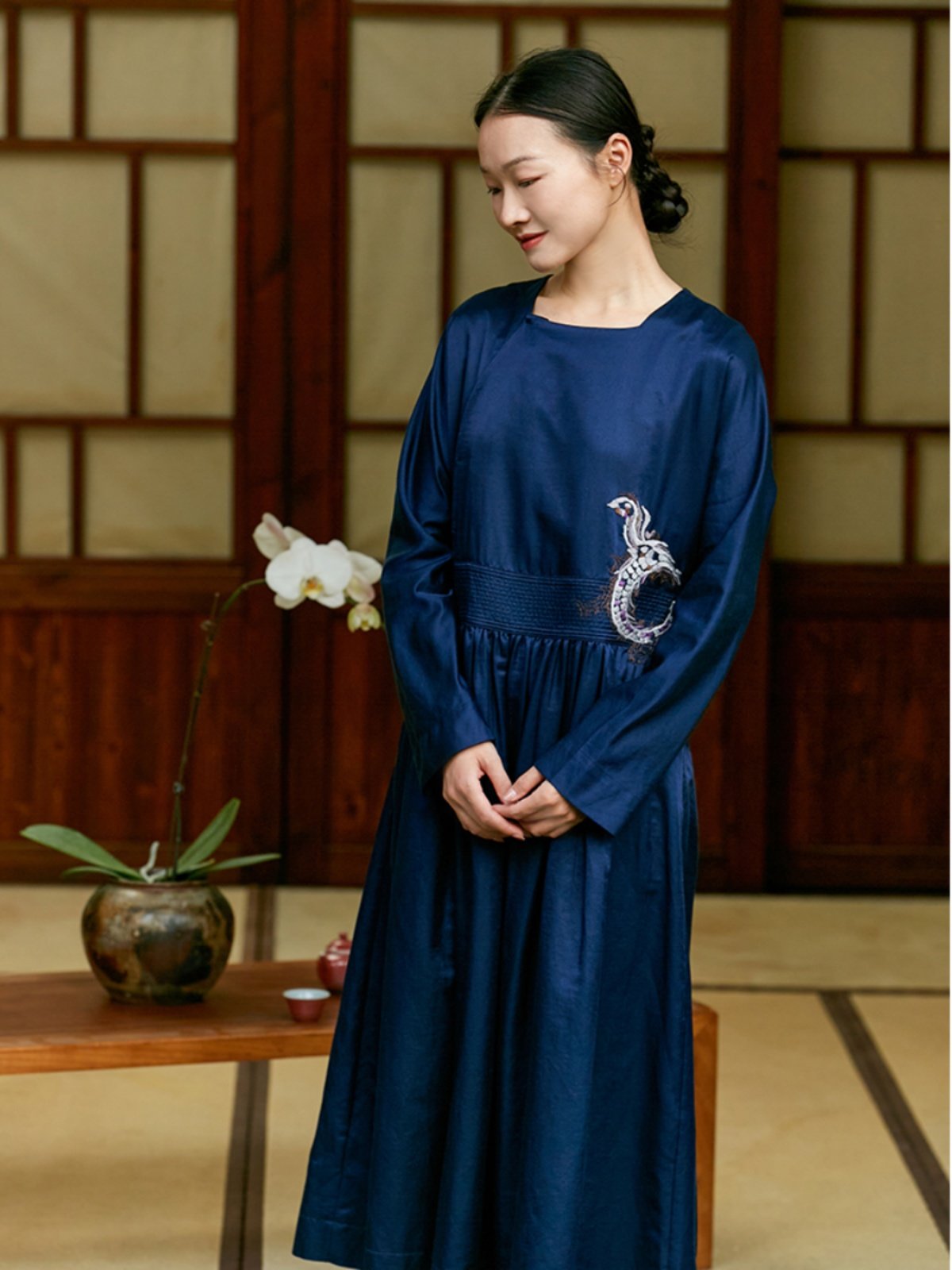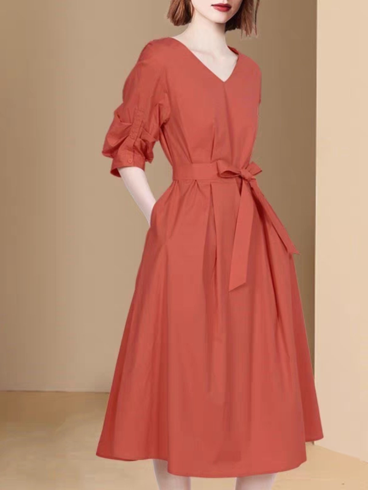Cksha French-Style Slim-Fitting Hepburn Dress, Spring and Summer V-Neck, Waist-Cinching, Slimming, Three-Quarter Sleeves, A-Line Dress, Plus Size