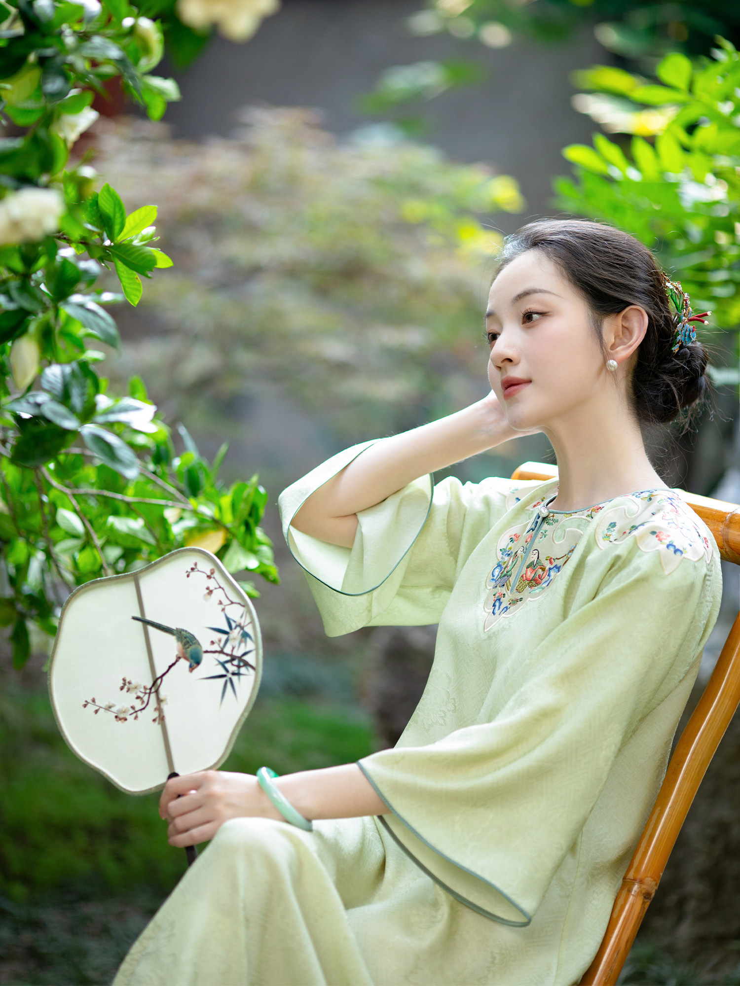 Zhuqing Liuyun | 2025 Summer New Collection | Silk Perforated Cloud Shoulder Embroidery New Chinese Style A-Line Loose Cheongsam