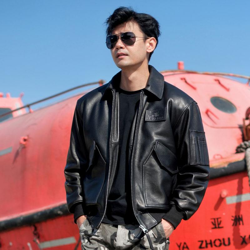 Retro Air Force Cwu45P Pilot Leather Jacket A2 Leather Jacket Men's Genuine Leather First Layer Goatskin Plus Cotton Large Size