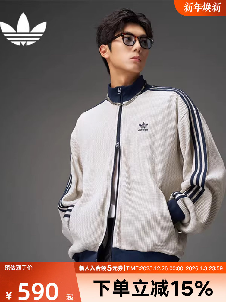 Adidas Adidas Autumn Trefoil Men's Knitted Waffle Stand Collar Sports Loose Jacket Kc2618