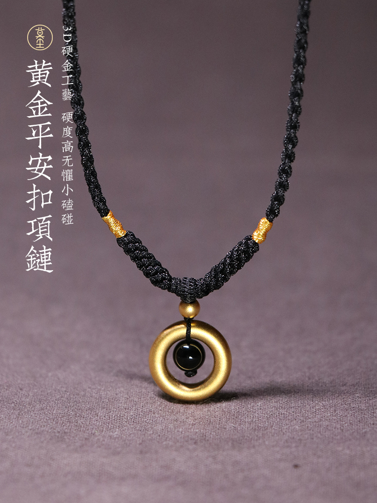 Gold Peace Pendant Plain Circle Ring Fortune Bead Unisex Handmade Braided Rope Zodiac Year Pure Gold Couple Necklace