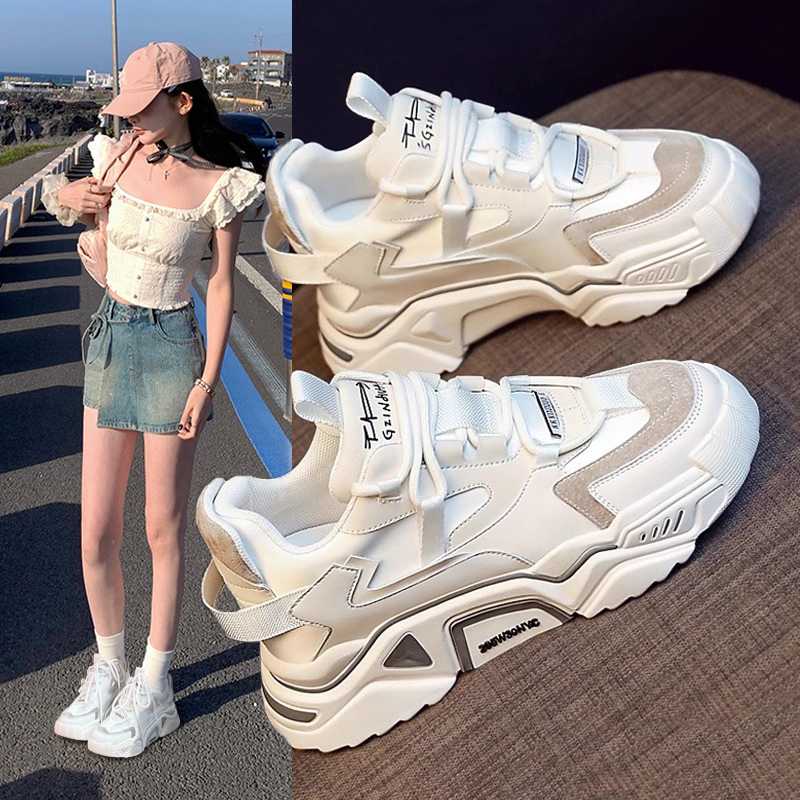 Hong Kong Thick-Soled Height-Increasing Panda Sneakers for Women 2025 Spring and Autumn New Casual White Shoes Genuine Leather Fashion Sneakers
