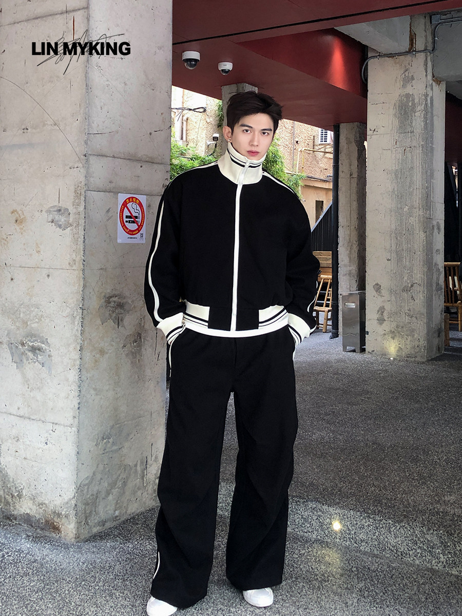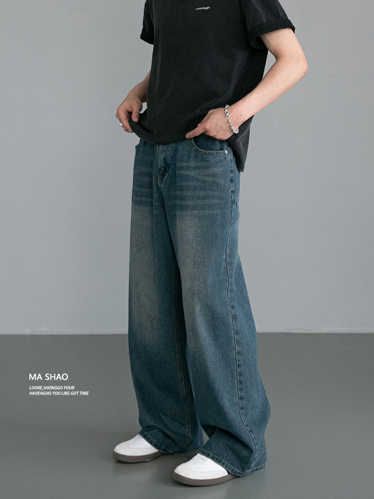 25Fw European and American Style Early Autumn New Letter Jacquard Workwear Denim Cinched Waist Jacket Fashionable Unisex Skateboard Pants