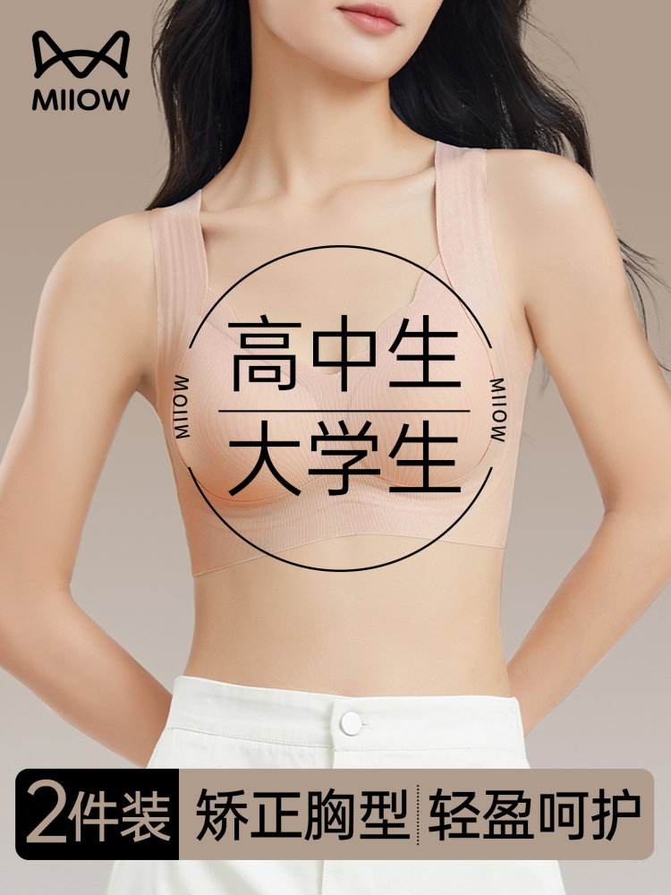 Catman High School Girl Bra 18-Year-Old College Student 17-Year-Old Puberty Development Period Sports Shock-Proof Anti-Sagging Underwear