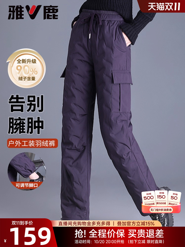 Yalu Outdoor Workwear down Pants for Women, Winter 2025 New Fashion High-Waisted Straight-Leg Fleece-Lined Jogger Pants for Women