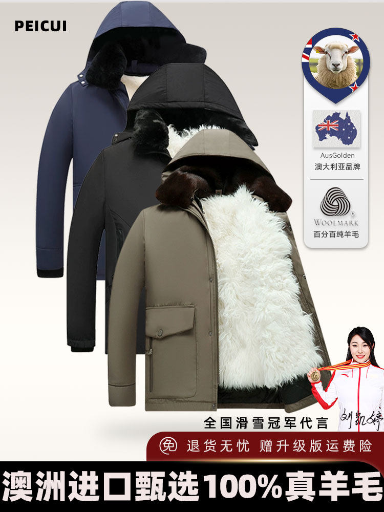 Wool Cotton Jacket for Men, Fur Integrated, Thickened Sheepskin Jacket for Middle-Aged and Elderly, Northeast Cotton Clothing, Winter Dad's Coat