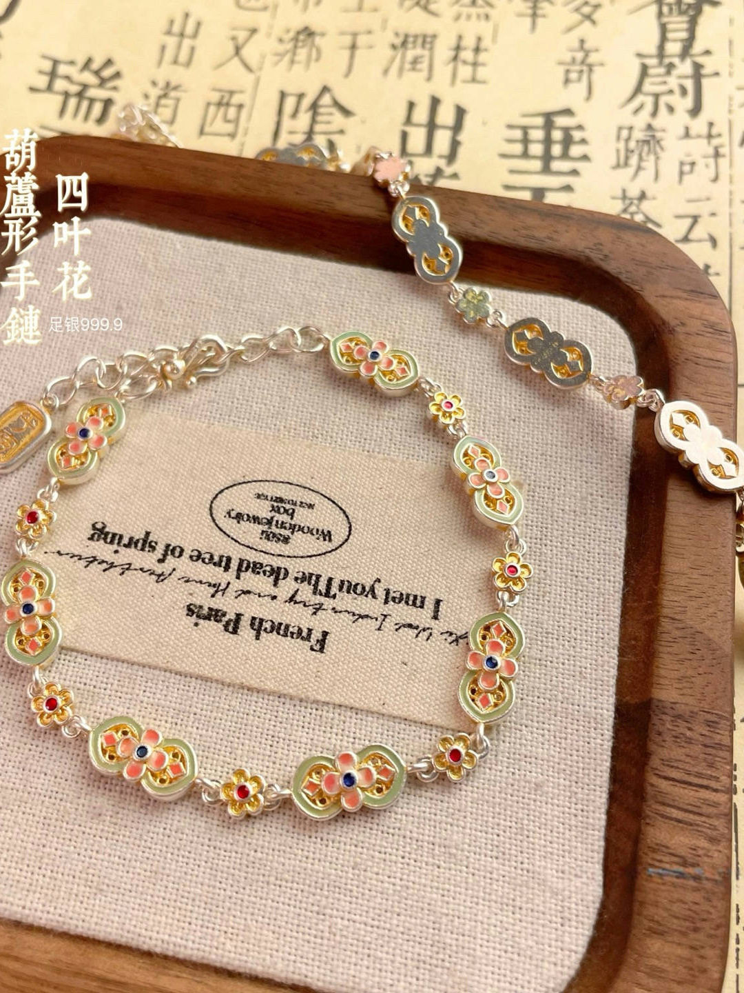 9999 Pure Silver Bracelet for Women, Sterling Silver with Enamel and Gold-Plated Gourd Design, Niche Exquisite New Chinese Style National Trend Jewelry, Gift for Girlfriend