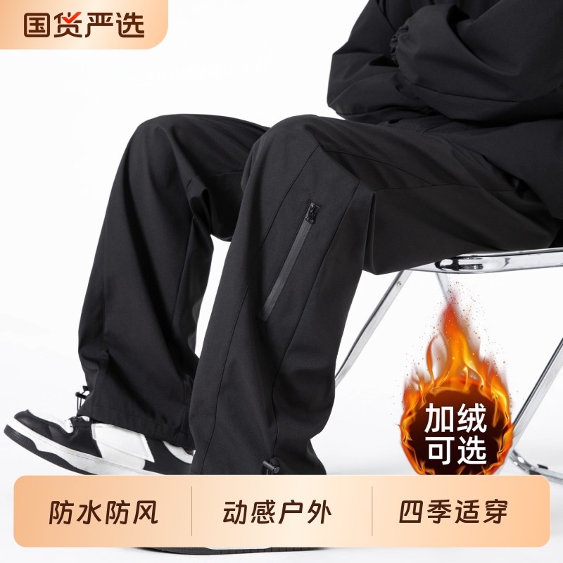 Men's Outdoor Pants Autumn 2025 New Style Windproof Waterproof Loose Straight-Leg Sports Workwear Long Pants Black Fleece-Lined
