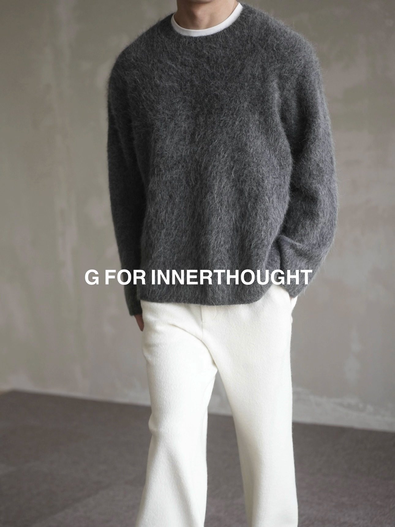 G for Innerthought Alpaca Wool Blend Baby Crew Neck Sweater Men's Base Layer Gray