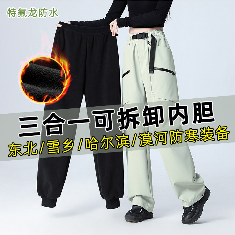 Women's 3-in-1 Detachable Ski Pants, Men's Cold-Proof Gear for Northeast Harbin Snow Country, Waterproof and Windproof