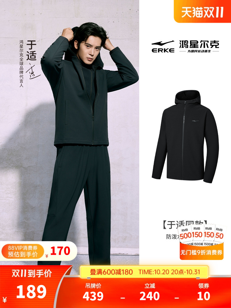 Hongxing Erke Men's Jacket for Autumn and Winter, New Men's Fleece-Lined Waterproof Windbreaker, Sports Trench Coat for Men