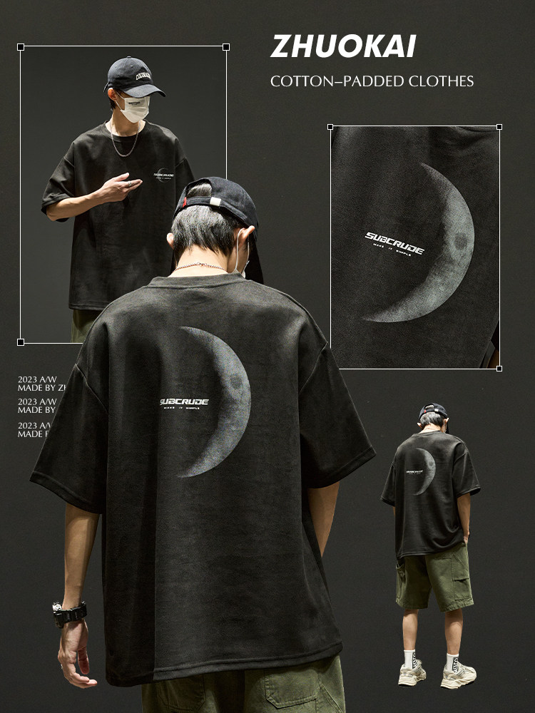 Short-Sleeved T-Shirt for Men 2025 New Summer High-End Stylish American Men's Clothing Heavy Half-Sleeve Top