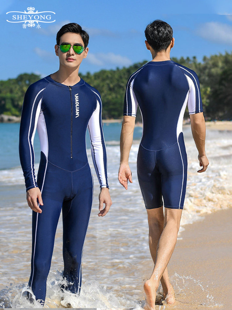 One-Piece Men's Swimsuit for Adults, Children and Teenagers, Large Size, Fat Children, Professional Long-Sleeved Long Pants, Sun Protection Swimming Trunks Set