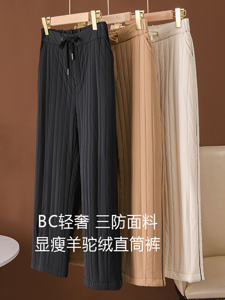 Bc Light Luxury Three-Proof Fabric Wool Alpaca Thickened Straight-Leg Pants with Vertical Stripes and Stitching for a Slimming Effect, Casual Straight-Leg Pants