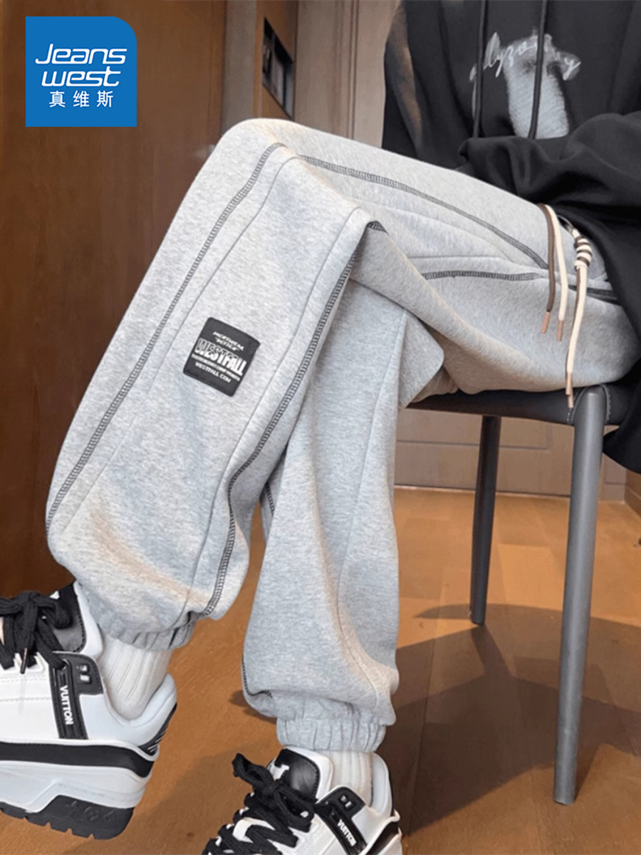 Jeanswest Youth Pants for Boys, Junior High School Students' Sports Pants, Autumn and Winter Loose Cotton Jogger Pants, Gray Sweatpants