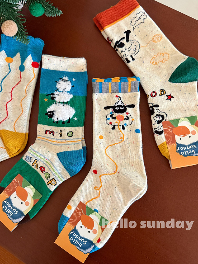 Cute Original Cartoon Socks for Women, Mid-Calf Socks, Pure Cotton, Spring and Autumn, Trendy Internet Celebrity Socks, Japanese Style, Unique and Playful with Colorful Dots