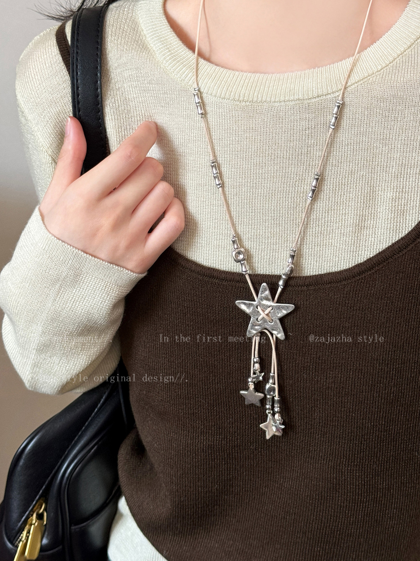 Vintage Silver Star Pendant Necklace for Women, Autumn and Winter Niche Design, Light Luxury High-End Sweater Chain, Versatile Long Accessory