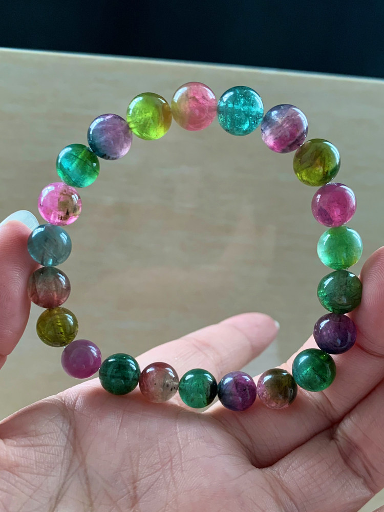 Natural Brazilian Blue Pink Tourmaline Bracelet, Old Mine Watermelon Jewelry, Two-Tone Watermelon Ethnic Style, One Item One Picture