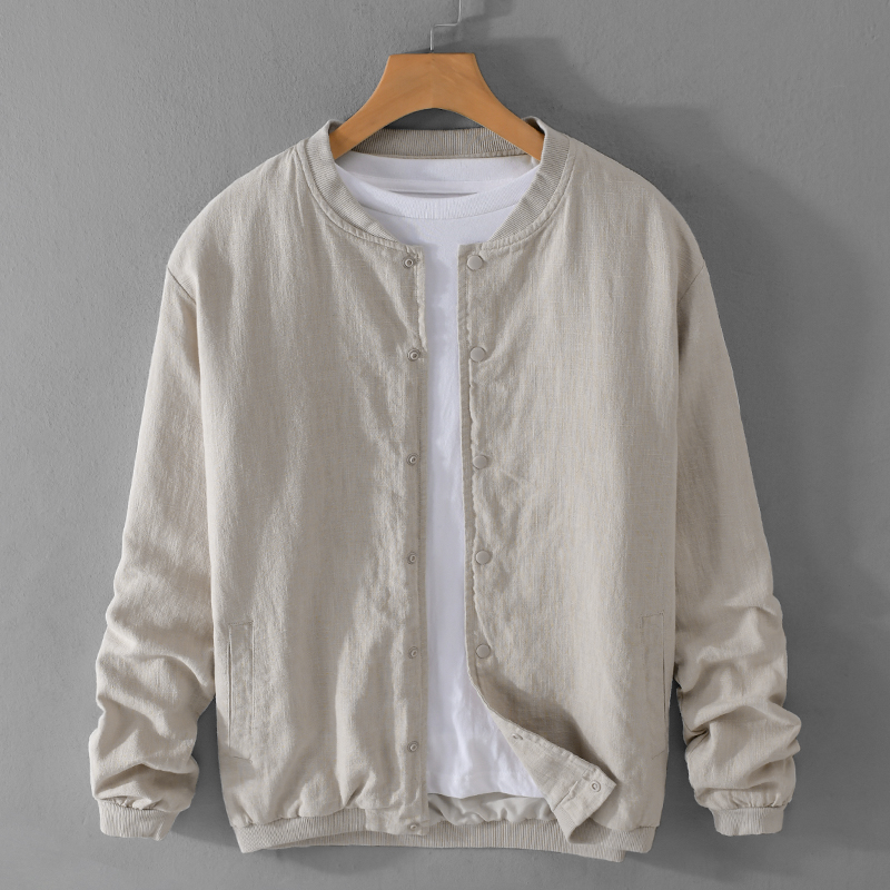 Japanese Retro Baseball Collar Casual Linen Jacket for Men, Spring Thin Loose Versatile Cotton-Linen Top, Solid Color Coat