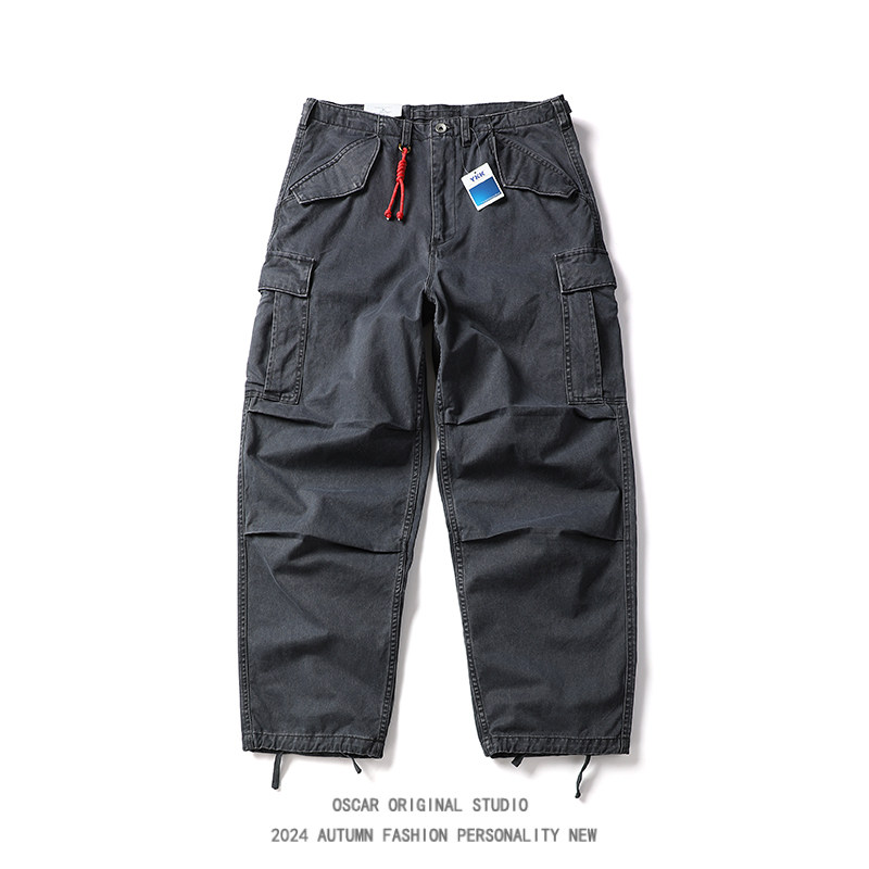 American-Style Trendy Heavy-Duty Washed Straight-Leg Cargo Pants for Men, Autumn and Winter, Large Pockets, Loose Fit, Pure Cotton, Jogger Casual Long Pants