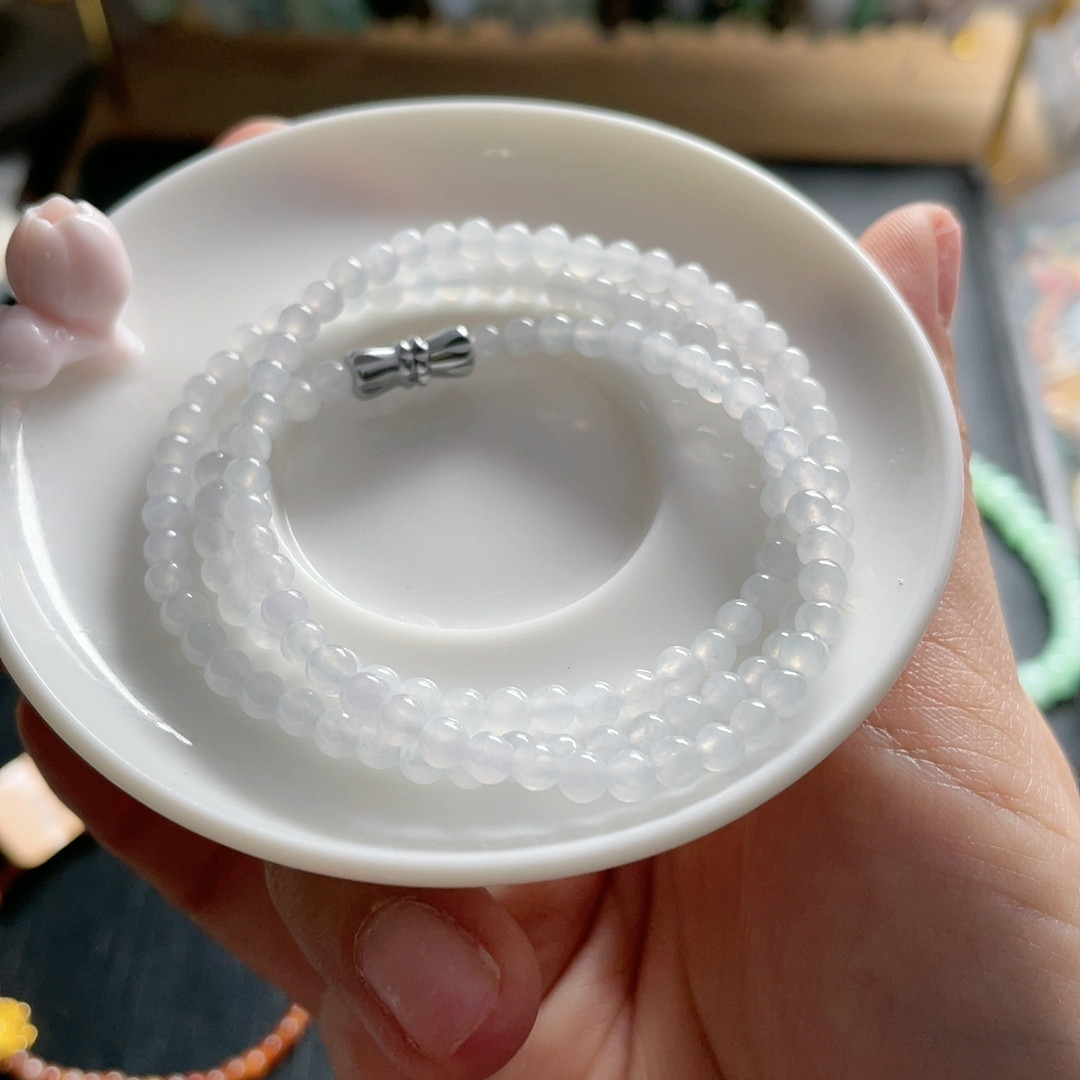 Close Your Eyes and Take a Look! Card 3.5 Ice Transparent Xiaomi Necklace Clavicle Chain Long Necklace White Moonlight Burmese Jade a Grade