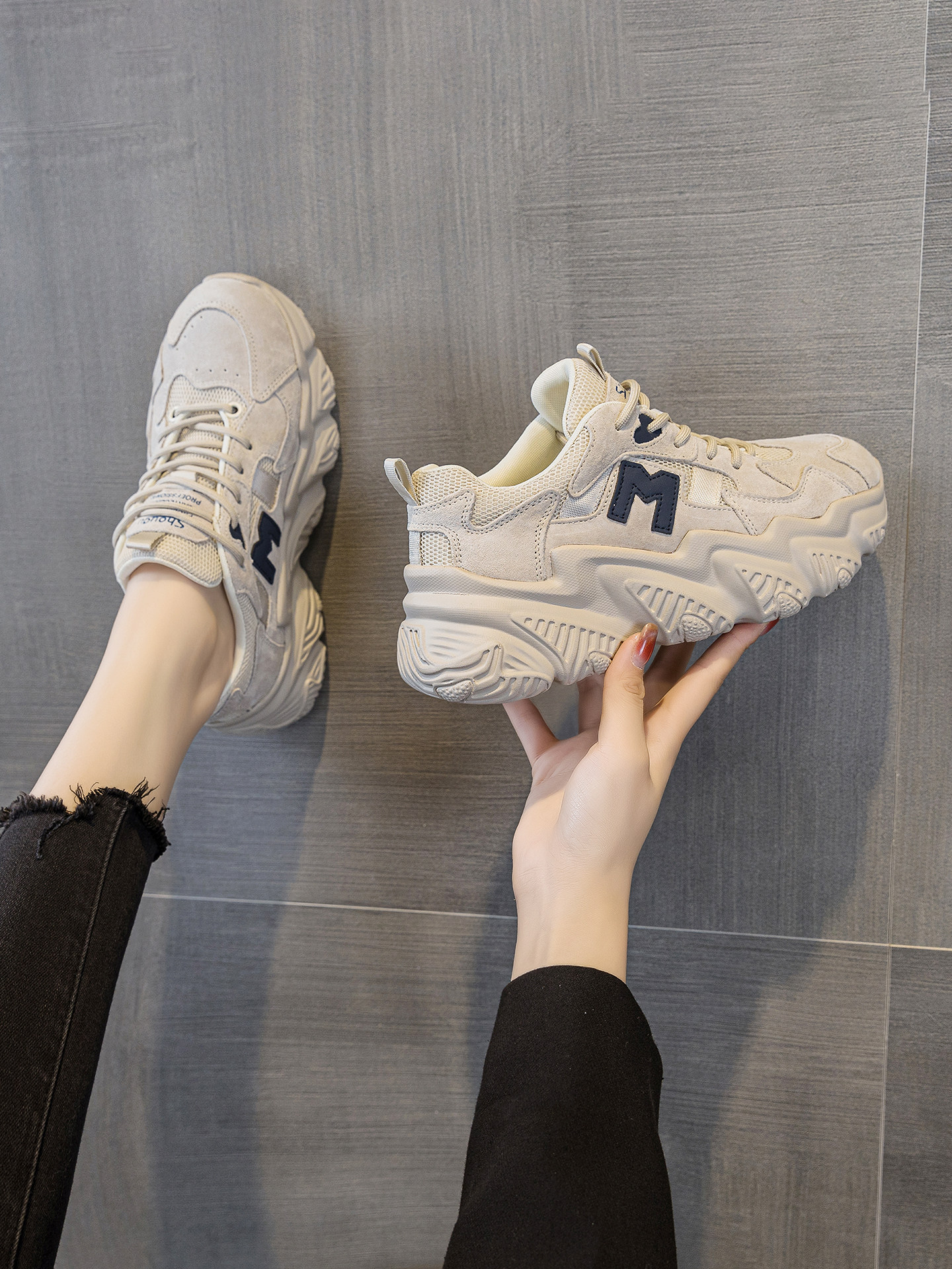 Chio2Nd Nanfeng Women's Height-Increasing Pearl Lace Fairy-Style Dad Shoes New Casual Sports Shoes