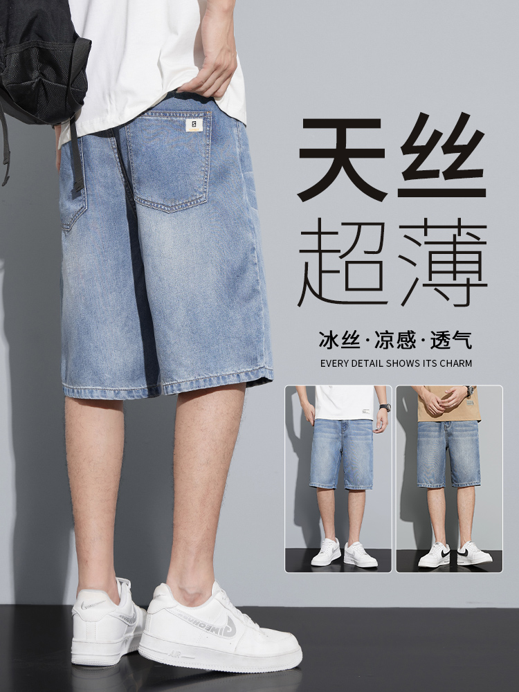 Ice Silk Denim Shorts for Men, Summer Thin Style, 2025 New Loose Straight-Leg 5-Point Casual Tencel Mid-Length Shorts