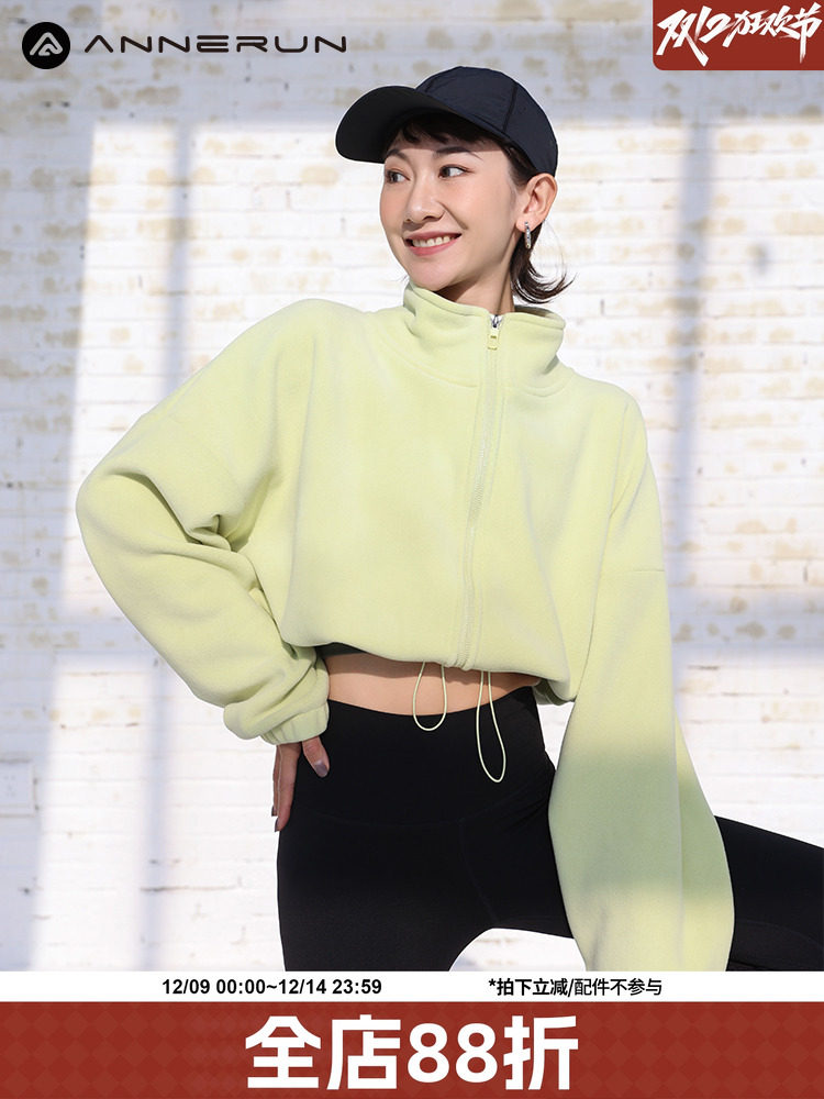 Annerun Lamb Fleece Sports Jacket with Fleece Lining, Thickened Stand Collar, Fleece Sports Fitness Casual Polar Fleece Top