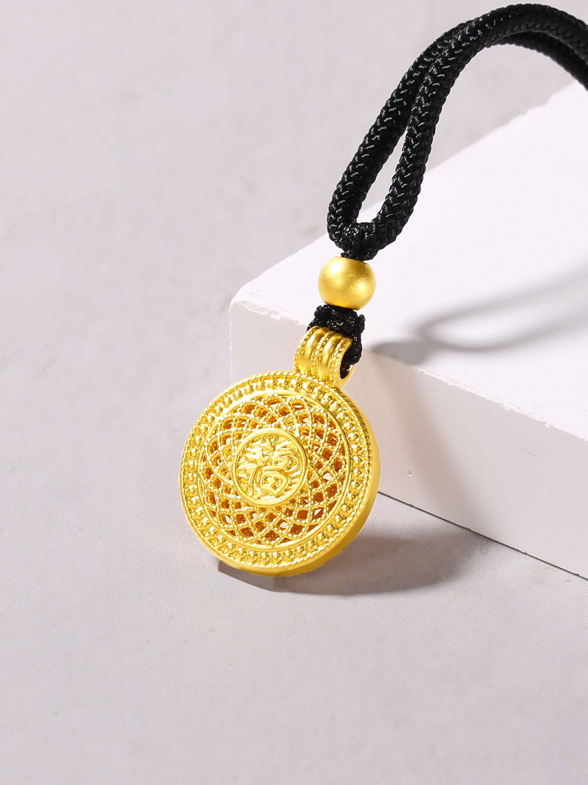 Gold Compass Pendant, Pure Gold 999 Necklace, Pure Gold Eight-Treasure Compass Fortune Pendant, Traditional Braided Rope, Gift for Boyfriend/Girlfriend