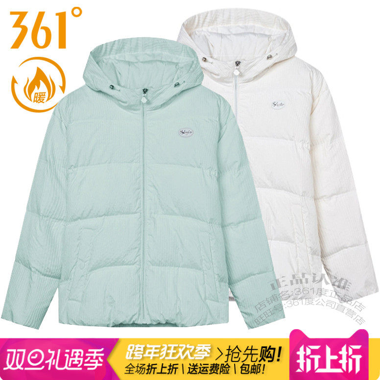 361 Degrees Women's Sports down Jacket 2024 Winter New Model 361 Hooded Thickened Warm Windproof Coat for Women 9308