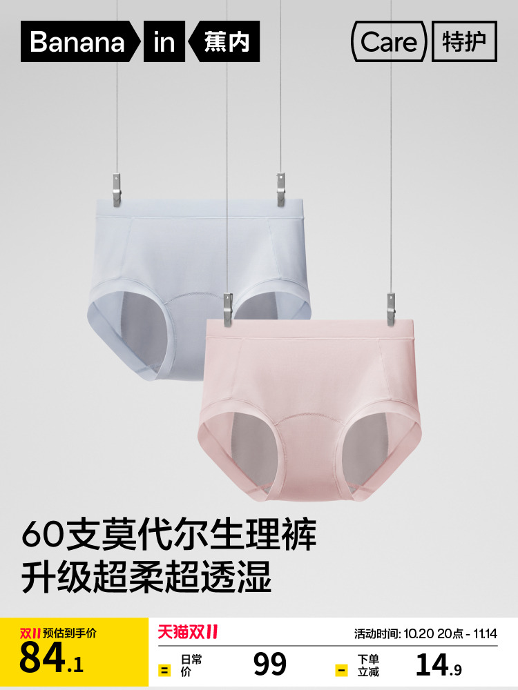 2 Pieces | Jiao Nei 509Air Women's Menstrual Underwear, Modal Widened Anti-Leakage Breathable Menstrual Period Safety Underwear