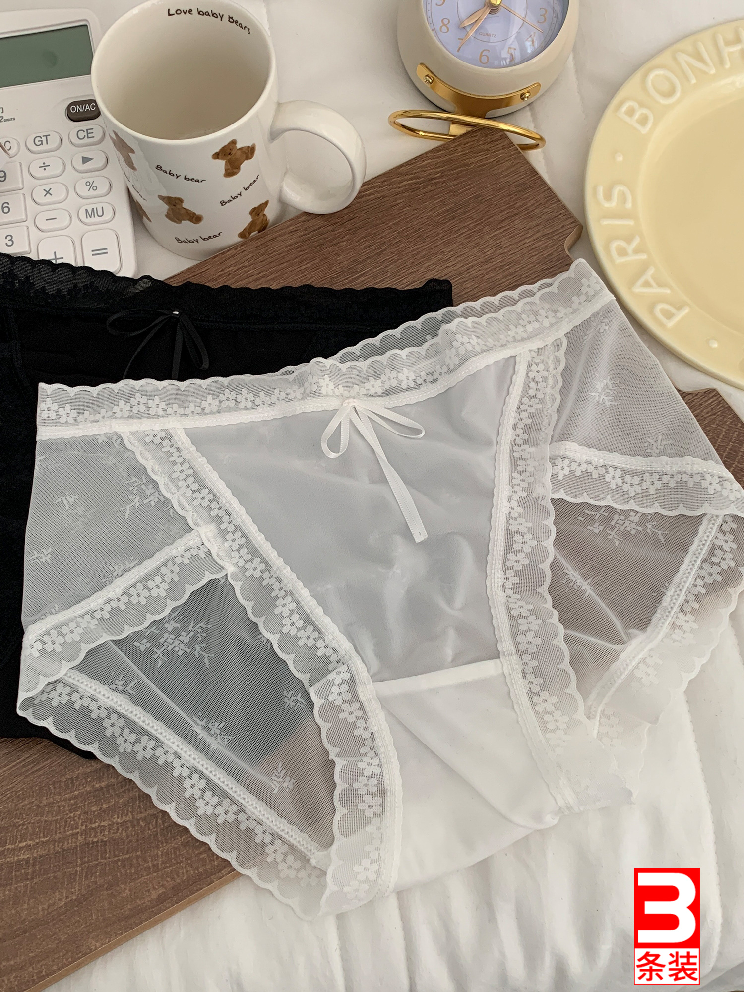 Ultra-Thin, Sheer Mesh, High-Slit, Semi-Transparent, Pure Desire Women's Panties for Summer, Pure Cotton Crotch, Mid-Waist Lace Mask Briefs