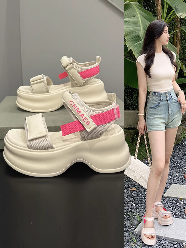 Hong Kong Style Dad Sneakers for Women, Thick-Soled Popular Fairy-Style Sandals, 2025 New Spring and Summer Student Velcro Shoes