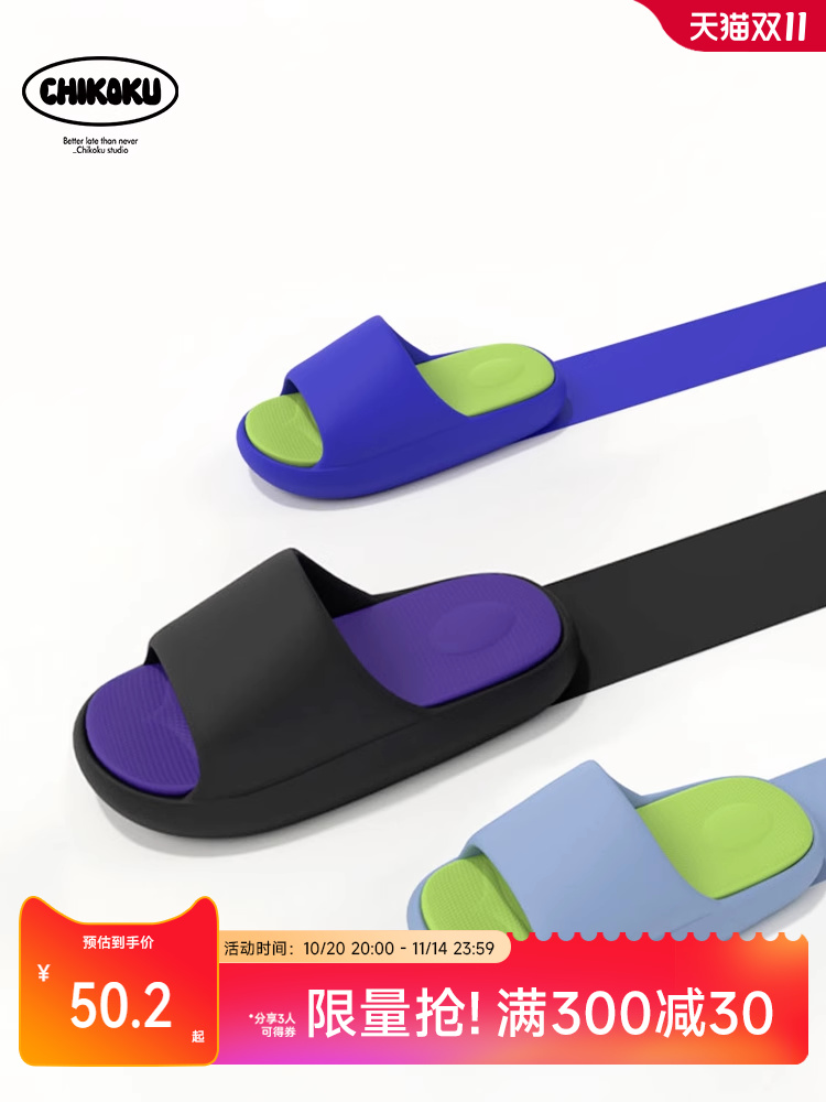 Chikoku Color-Blocked Slippers for Men, Summer Outdoor Wear, Thick-Soled, Non-Slip, Wear-Resistant, Shock-Absorbing, Sports Outdoor Flip-Flops ins Trendy