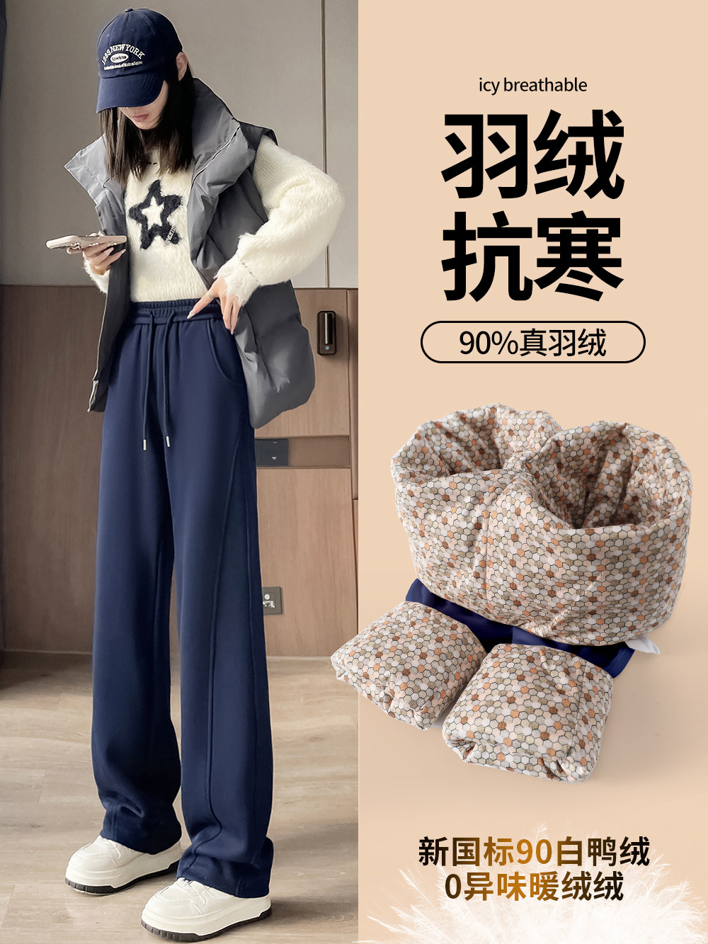 White Duck down Wide-Leg down Pants for Women, Winter Outerwear, 2025 New Thickened and Warm Narrow-Fit Cotton Pants for Extreme Cold in Northeast China