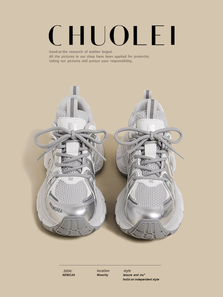 Platform Dad Sneakers for Women, 2025 Spring New Style, Petite Size, Silver, Versatile, Height-Increasing, Suitable for Wide-Leg Pants, Casual Sports Shoes