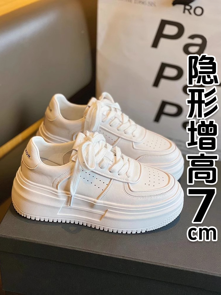 Hong Kong Genuine Leather Thick-Soled Height-Increasing White Sneakers for Women 2025 Spring and Autumn Casual Sneakers Soft-Soled Lightweight Loafers Platform Shoes