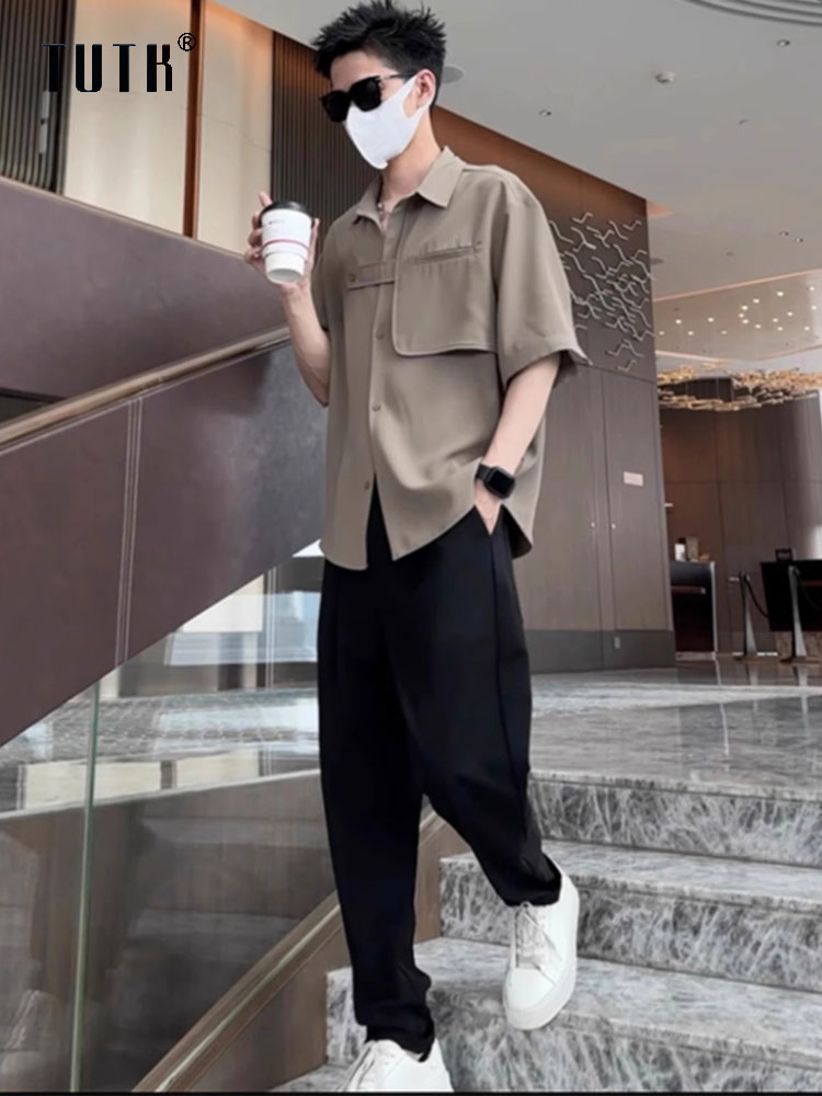 Ice Silk Casual Suit for Men 2025 New Summer High-End Stylish Short-Sleeved Shirt Men's Outfit Complete Set