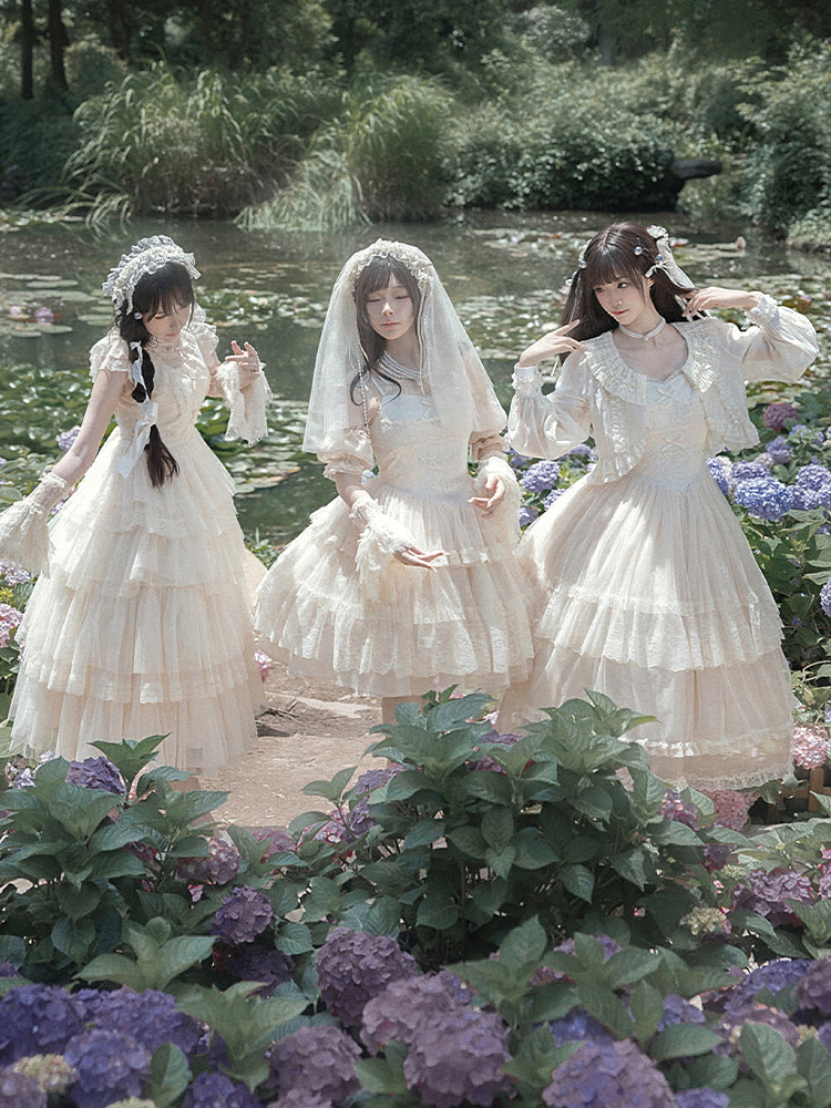 【Ivory Tower】Withpuji Original Design Cla Dreamy Large Skirt with Tulle Op/Jsk Three-Piece Lolita Dress