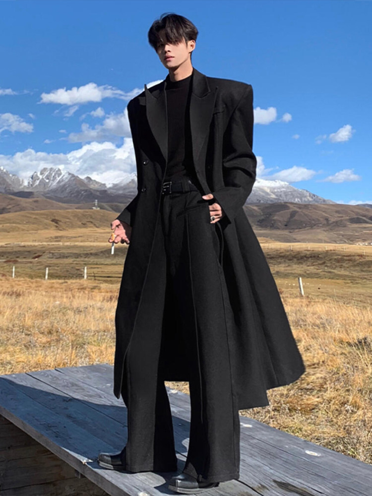 Black Woolen Coat for Men, Mid-Length, Autumn and Winter, High-End British Style Trench Coat, Cleanfit Korean Style Woolen Jacket