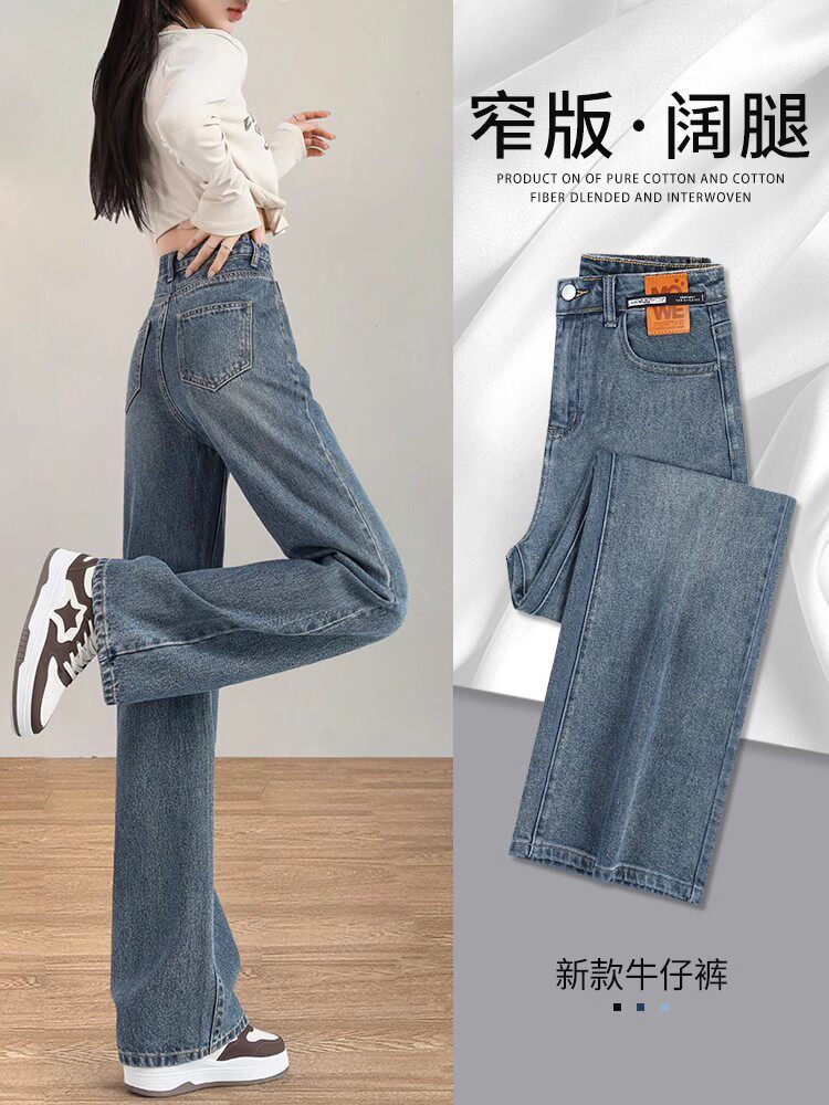 Fleece-Lined Wide-Leg Jeans for Women, 2025 Winter New Trendy High-Waisted Slimming Thickened Narrow Straight-Leg Pants