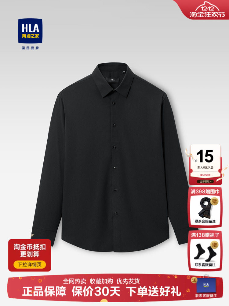 HLA Long-Sleeved White Shirt for Men, Wrinkle-Free Summer Shirt, Simple Business Black Work Shirt for Men