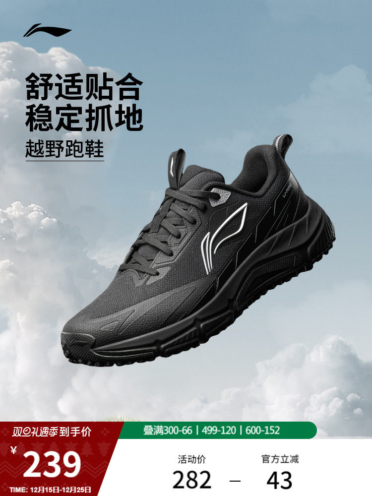 Li-Ning Zufeng丨 Trail Running Shoes Men's New Outdoor Hiking and Mountaineering Shoes Shock-Absorbing Black Mountain Sports Shoes