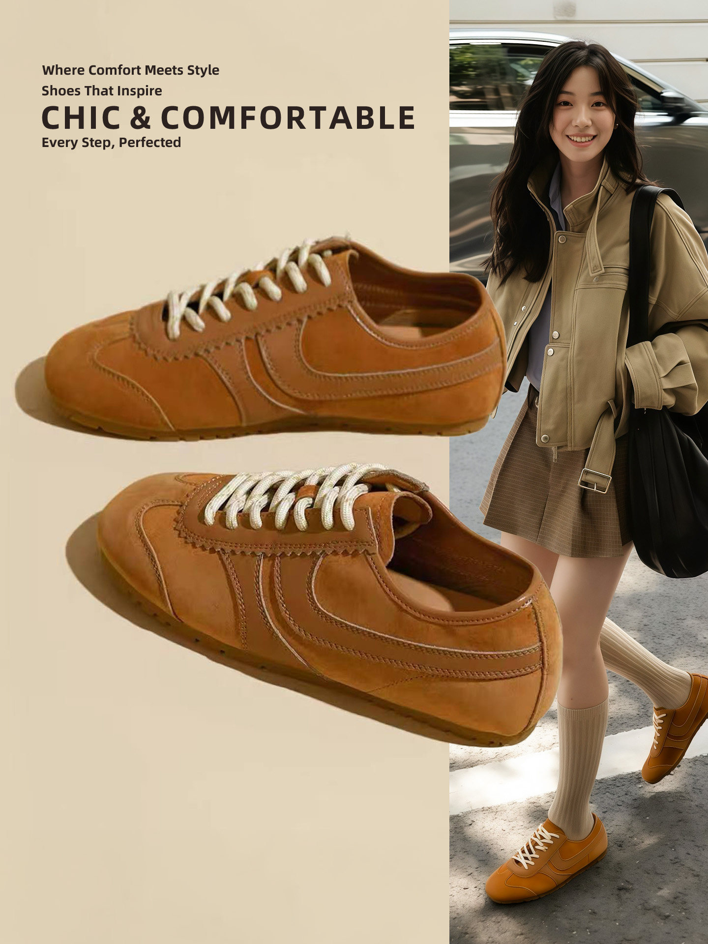 Hong Kong Flat Versatile Training Shoes for Women 2025 Autumn New Sneakers Genuine Leather Suede Round Toe Casual Sports Shoes