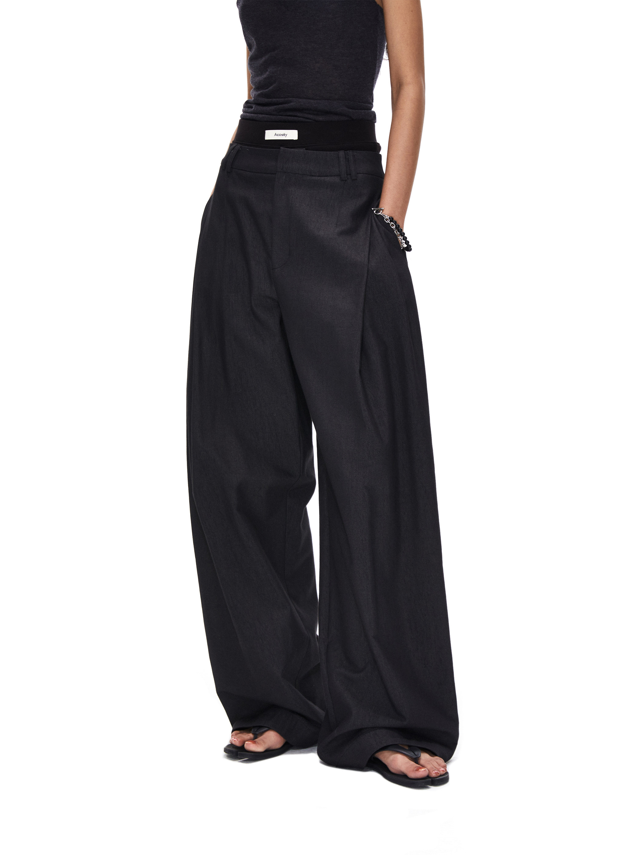 Acosey 25Ss Draped Scimitar-Shaped Side Pleated Wide-Leg Lazy Floor-Length Suit Pants