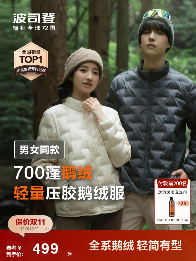 【90% Goose Down】Bosideng 25 Autumn Outdoor Travel Couple Layered Inner Liner Warm Lightweight down Jacket for Women and Men
