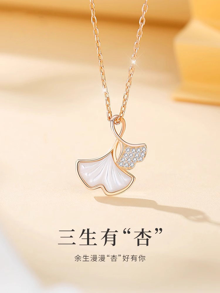 S999 Pure Silver Three-Season Apricot Necklace for Women, Light Luxury Niche High-End Clavicle Chain, Birthday Gift for Girlfriend
