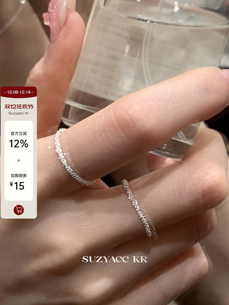 Suzyacc Kr Sparkling Plain Sterling Silver Ring, Light Luxury Niche Design, Index Finger Ring, Super Fairy-Like Elegant Ring